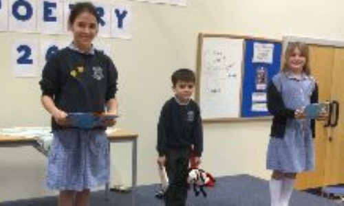 On Friday 26th April we held a Performance Poetry event. Parents were invited and two representatives from each class performed. The final winners were chosen by a panel of judges and each winner received a prize. It was a BRILLIANT event!